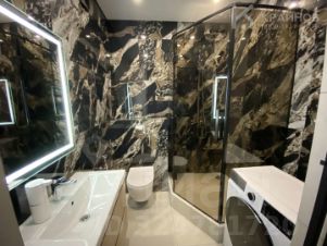 Совмещенный санузел : Полная отделка керамогранитом , качественная сантехника, стильная мебель.