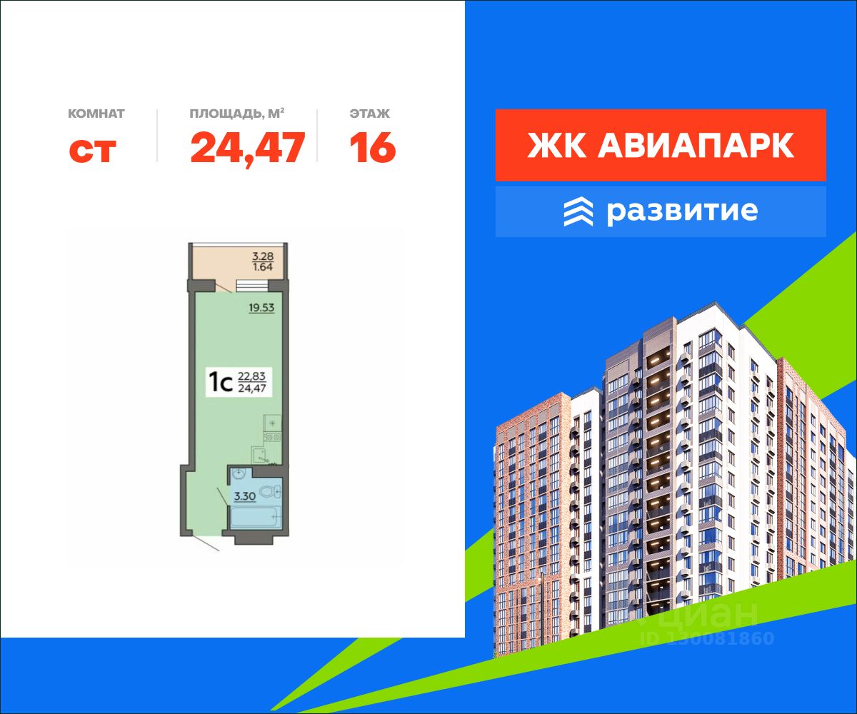 В продаже квартира площадью 24.47 кв. м с отделкой. Квартира расположена на 16 этаже 17 этажного дома, в новом жилом квартале "Авиапарк".