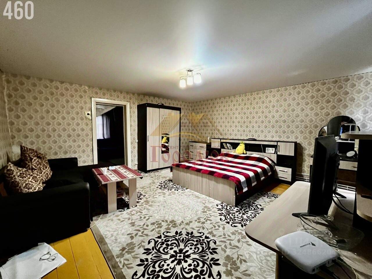 Квартира в одноэтажном доме: имеется большая жилая комната, кухня-гостиная, коридор, чулан с большим сухим погребом.
