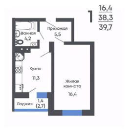 Общая площадь39,7 м²