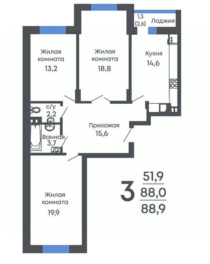 Общая площадь88,9 м²