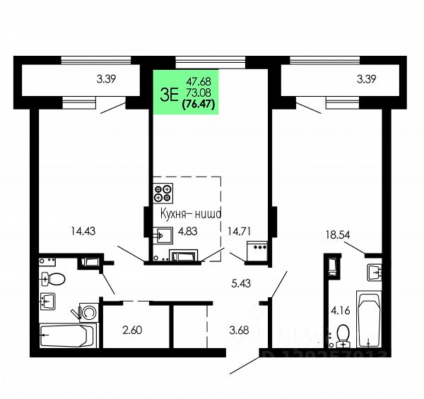 Продаётся 3-комнатная квартира в строящемся доме (Дом 1, дом 2), срок сдачи: I-кв. 2027, общей площадью 76.47 кв.м., на 9 этаже. Новый жилой комплекс от группы компаний "Проект Инвест" расположен по адресу: г. Воронеж, по ул. Шишкова.