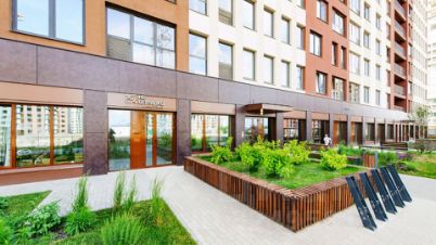 Перед домом будет расположен сквер имени Бунина. Внутри дворовая территория огорожена забором, доступ внутрь осуществляется по ключу от домофона. По территории будет дворовое освещение, которое в темное время суток будет создавать комфортную и уютную атмосферу. На территории комплекса будут расположены детские площадки, спортивные зоны, включающие в себя уличные тренажеры, баскетбольное поле, оборудование для Crossfit и многое другое. На территории комплекса предусмотрены прогулочные зоны, зоны отдыха, велодорожки. Дом также будет оснащен удобными велопарковками.