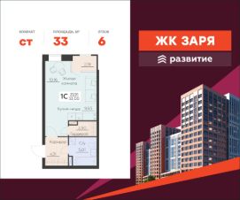 В продаже квартира площадью 33.00 кв. м с черновой отделкой. Квартира расположена на 6 этаже 8 этажного дома, в новом жилом комплексе "Заря" от федерального застройщика "Развитие".