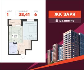 В продаже квартира площадью 38.41 кв. м с черновой отделкой. Квартира расположена на 6 этаже 14 этажного дома, в новом жилом комплексе "Заря" от федерального застройщика "Развитие".