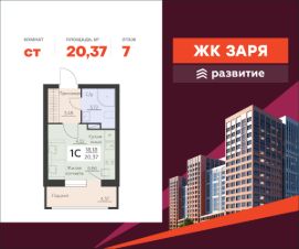 В продаже квартира площадью 20.37 кв. м с черновой отделкой. Квартира расположена на 7 этаже 14 этажного дома, в новом жилом комплексе "Заря" от федерального застройщика "Развитие".