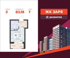 В продаже квартира площадью 83.18 кв. м с черновой отделкой. Квартира расположена на 7 этаже 14 этажного дома, в новом жилом комплексе "Заря" от федерального застройщика "Развитие".