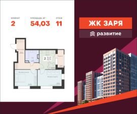 В продаже квартира площадью 54.03 кв. м с черновой отделкой. Квартира расположена на 11 этаже 14 этажного дома, в новом жилом комплексе "Заря" от федерального застройщика "Развитие".