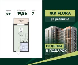 В продаже квартира площадью 19.86 кв. м с отделкой. Квартира расположена на 7 этаже 16 этажного дома, в жилом комплексе комфорт-класса FLORA ("Флора").