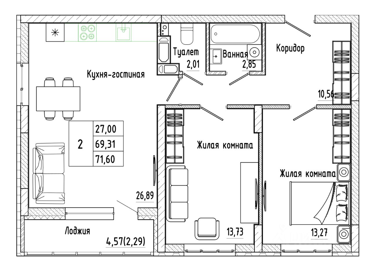 Каждая квартира подготовлена к заселению: выполнена разводка инженерных сетей, установлены качественные окна, радиаторы и приборы учёта. Для вашего удобства — идеально ровные стены и полы, что облегчает дальнейшую отделку или расстановку мебели.