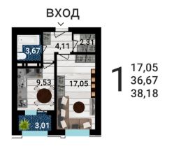 Продается 1-комн. квартира, 38,88 м²