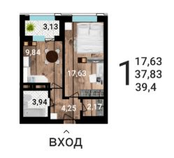 Продается 1-комн. квартира, 39,36 м²