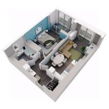 Разработанная по дизайн-проекту планировка имеет продуманные габариты всех функциональных зон, что позволяет легко и логично расставить мебель и организовать пространство.