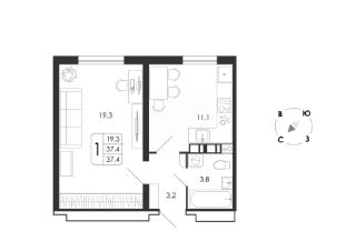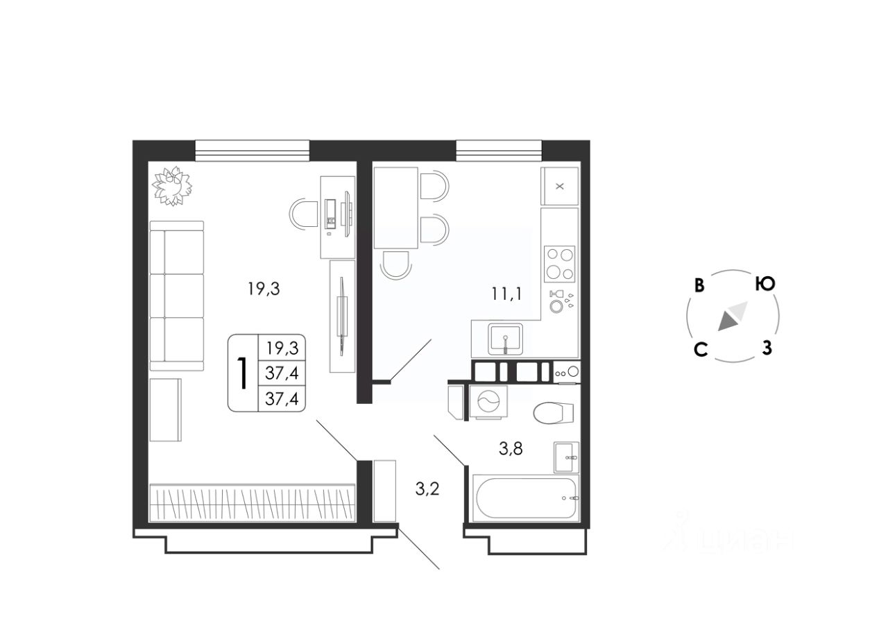 Общая площадь37,4 м²