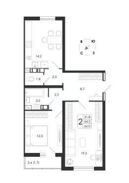 Общая площадь66 м²