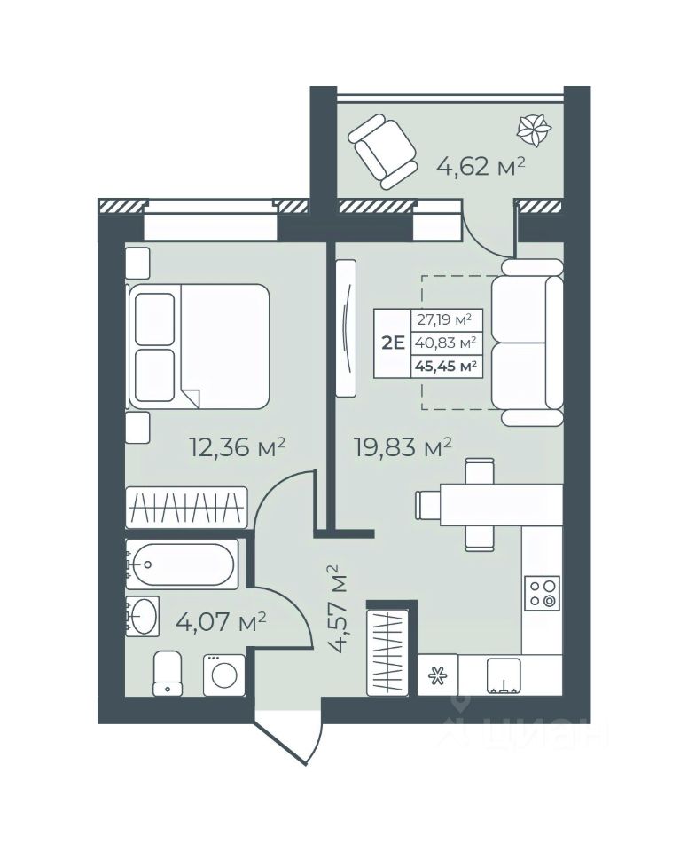 Общая площадь45,45 м²
