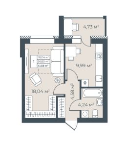 Продается 1-комн. квартира, 41,58 м²