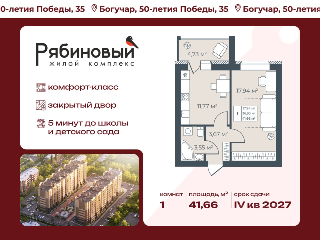 Жилой дом комфорт-класса в Богучаре Комплекс состоит из двух кирпичных домов комфорт-класса. Закрытая дворовая территория обеспечивает безопасное пространство для отдыха детей и взрослых. Безбарьерная среда во дворе и местах общего пользования обеспечивает удобство для пожилых людей и родителей с колясками. Помещения для колясок, велосипедов и спорт-инвентаря в каждом подъезде. Дизайнерский ремонт мест общего пользования. Улучшенная базовая отделка квартир с полу-сухой стяжкой, гипсовой штукатуркой и разводкой электричества. Функциональные планировки - эффективно используется площадь квартиры, просторные кухни и гостиные, ниши под шкафы, предусмотрены гардеробные и постирочные комнаты. Адрес: город Богучар (Воронежская область) Высота: 9 этажей Квартиры: 186 квартир в первой очереди Материал: кирпич Площадь: 9 779 кв.м жилья в первой очереди