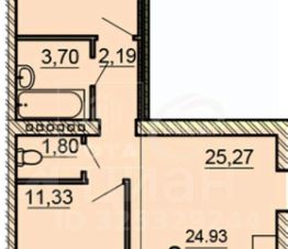 Квартира состоит из двух комнат, гостиной,санузла,ванной комнаты, есть балкон.