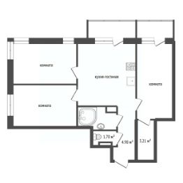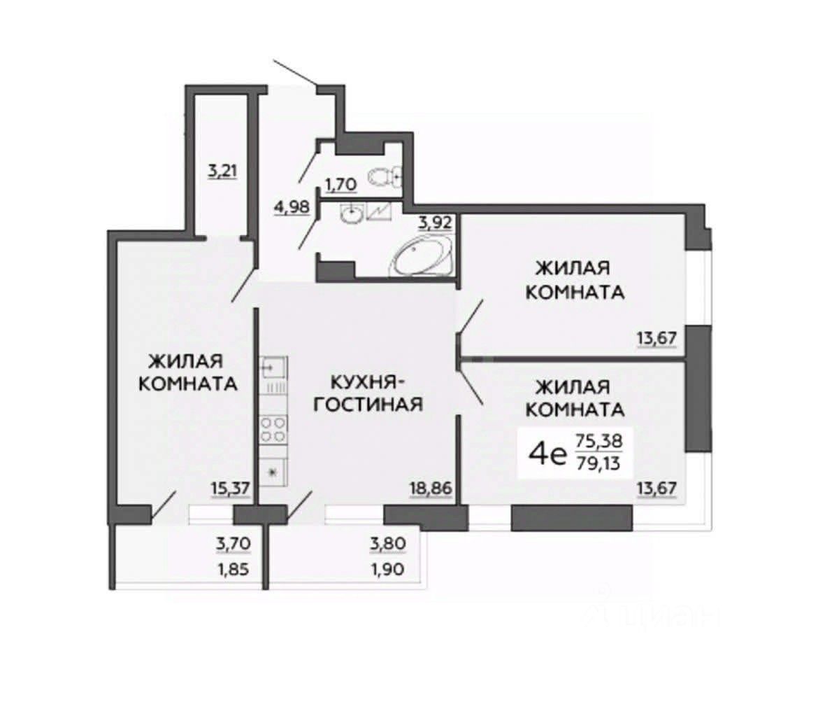 Просторная кухня-гостиная, спальня с гардеробной, две детские комнаты. Раздельный санузел.