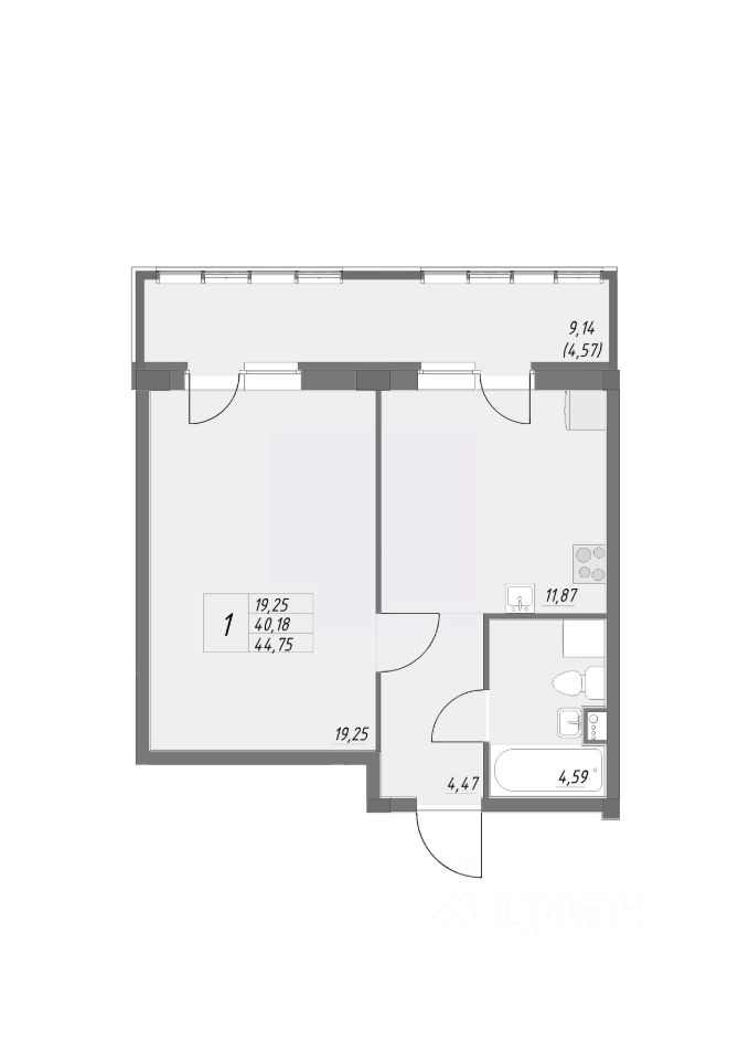 Общая площадь44,75 м²