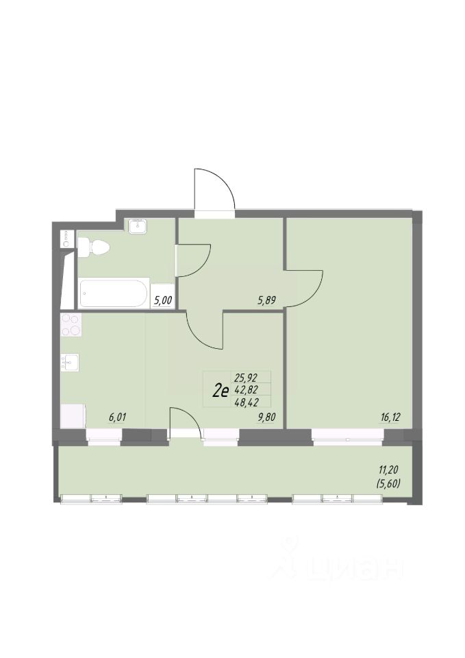 Общая площадь48,42 м²