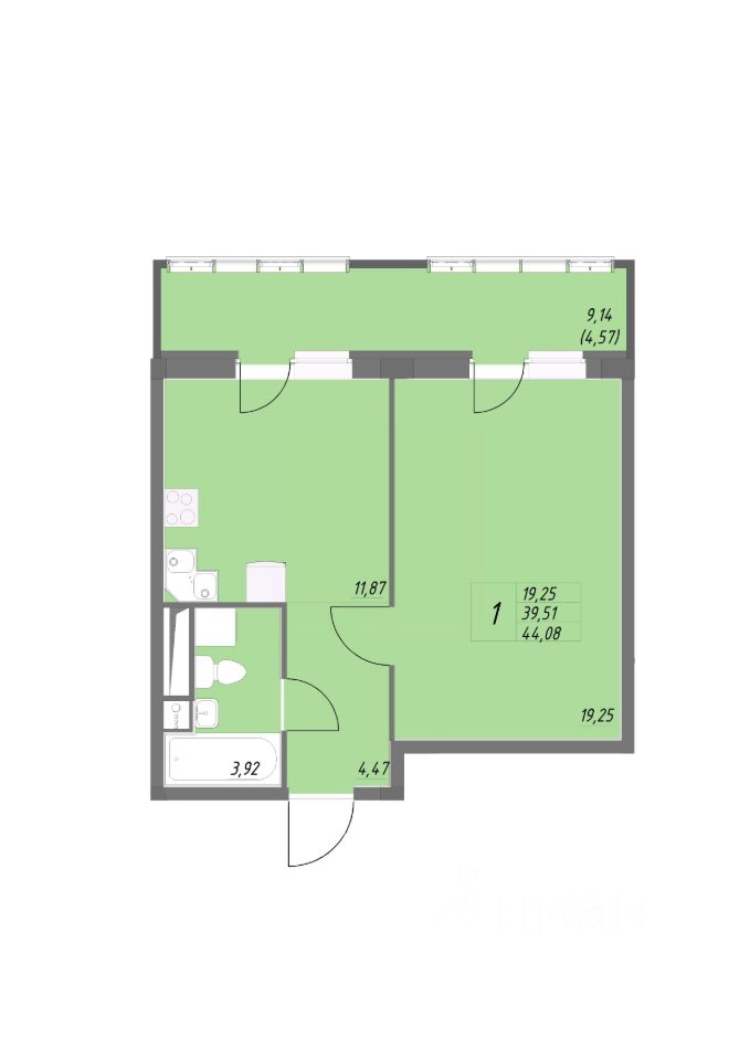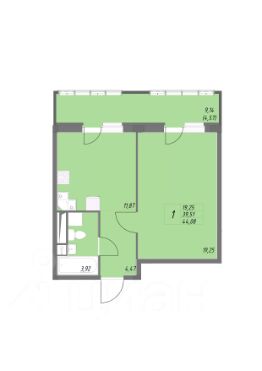 Общая площадь44,08 м²
