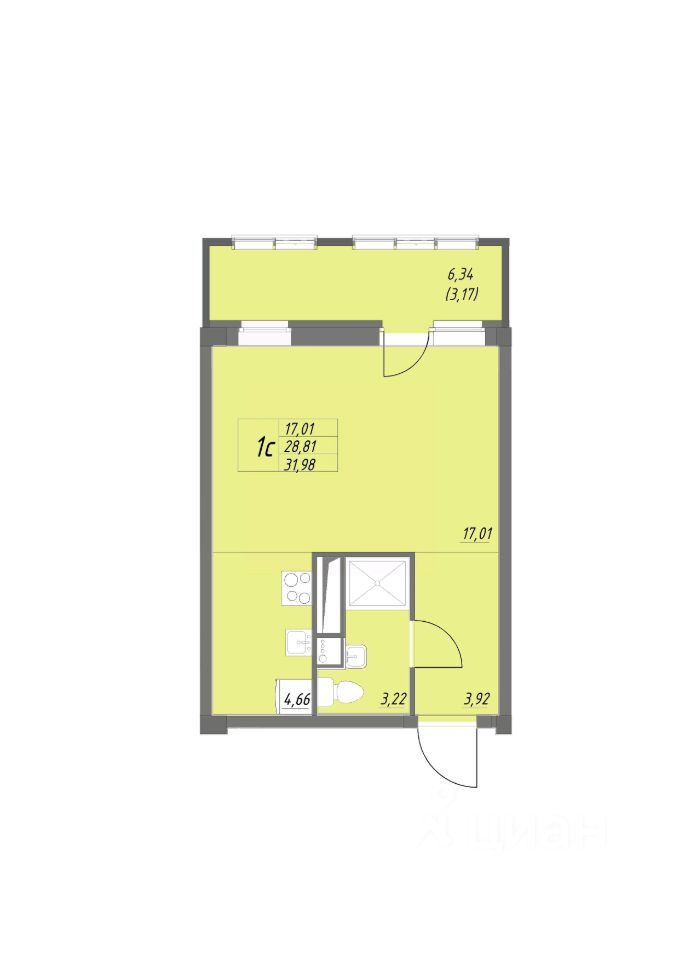 Общая площадь31,98 м²