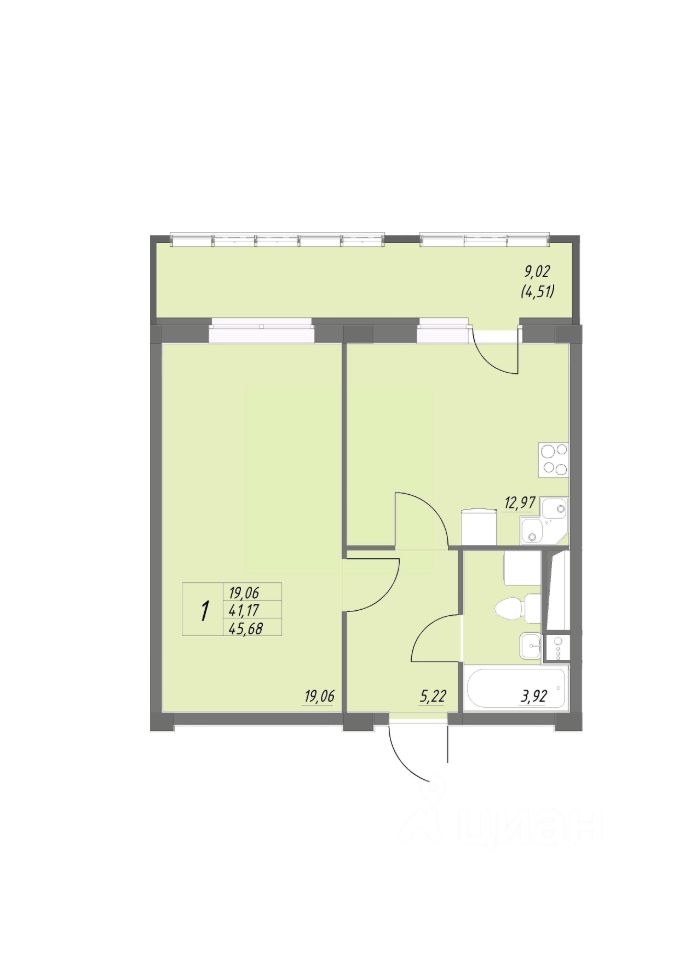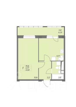Продается 1-комн. квартира, 45,68 м²