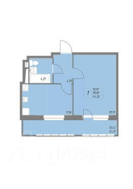 Продается 1-комн. квартира, 44,26 м²