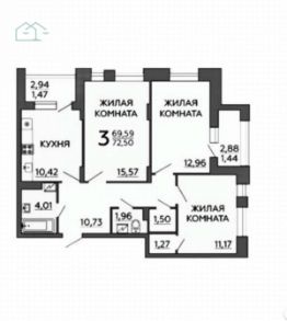 Продаётся просторная трёхкомнатная квартира на 14 этаже 18-этажного дома площадью 72.5 кв.м.