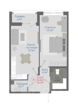 Общая площадь56,2 м²