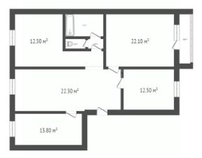 Планировка включает четыре комнаты: три просторные спальни и большой зал, что идеально подходит для комфортного проживания большой семьи. Кухня площадью 12 кв. м удобна для ежедневного использования и семейных ужинов.
