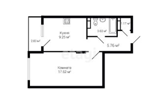 -Общая площадь 38.74 м2, жилая 17.52 кв.м