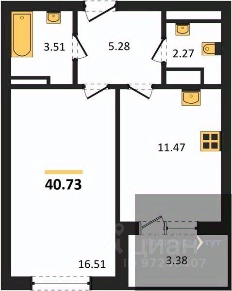 Квартира: 1 к 40,73 кв.м., 12 этаж в комплексе Городские сады, 2 очередь, корп.1, сдача: 2кв. , этажей: 18, адрес Воронеж г., Ломоносова ул., , Застройщик: ВДК.
