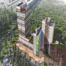 Разнообразия фасадов также рассчитывают добиться за счёт разного размера и ритма оконных проёмов. Особый акцент сделают на кровлю. В некоторых местах там оборудуют террасы. Перед домом будет расположен сквер имени Бунина. Внутри дворовая территория огорожена забором, доступ внутрь осуществляется по ключу от домофона. Проезд на территорию двора допускается только для пожарной техники, а сквозные подъезды позволят жителям комфортно выгружать покупки из автомобилей у дверей подъезда. По территории будет дворовое освещение, которое в темное время суток будет создавать комфортную и уютную атмосферу.