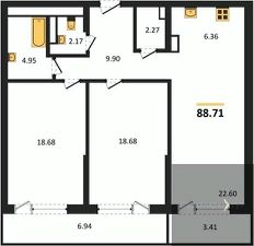 Квартира: 2 к 88,71 кв.м., 9 этаж в комплексе Бунин, 3 очередь, корп.1 (Секции 6,7), сдача: 2кв. , этажей: 23, адрес Воронеж г., Московский пр., д. 136, Застройщик: ВДК.
