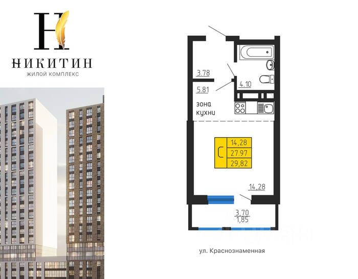 Продаётся студия в строящемся доме (Дом 2), срок сдачи: IV-кв. 2027, общей площадью 29.82 кв.м., на 4 этаже. Жилой комплекс "Никитин" расположен в Ленинском районе города Воронеж. Он представляет собой современный жилой комплекс, который включает в себя несколько многоэтажных домов, обустроенных территорию и парковочные места. ЖК "Никитин" предлагает различные типы квартир, от однокомнатных до многокомнатных, с различной планировкой и площадью. В квартирах учтены современные требования к комфорту и функциональности, а также использованы качественные материалы и технологии при их строительстве. Кроме того, в составе жилого комплекса "Никитин" также предусмотрены различные инфраструктурные объекты, такие как детские площадки, магазины, спортивные и развлекательные зоны. ЖК "Никитин" находится в удобном месте, которое обеспечивает доступность к основным транспортным магистралям и другим элементам городской инфраструктуры. ЖК "Никитин" обеспечивает своих жителей уютной и благоустроенной территорией. Здесь нет машин, что создает спокойную и безопасную атмосферу. Территория ограждена забором, что обеспечивает приватность и безопасность жителей. Территория комплекса разделена на 3 основные зоны: лаунж, детская и спортивная. Лаунж зона порадует жителей альпийскими горками, беседками и устройством для зарядки телефонов. В детской зоне созданы идеальные условия для активных игр и развлечений, а в спортивной зоне можно заниматься спортом на свежем воздухе. Также предусмотрена вспомогательная зона для выгула собак. Все эти элементы создают идеальное пространство для жизни и отдыха. Жилой комплекс "Никитин" предоставляет своим жильцам удобную и современную подземную парковку. В ней находится пост с мойками самообслуживания с пылесосом и возможностью подкачки шин. Для владельцев электрокаров предусмотрен пост зарядки, а также отдельное место для зарядки электроскутеров. Парковка обеспечена системой видеонаблюдения, которая обеспечивает безопасность автомобилей и жильцов. Въезд на паркинг осуществляется по системе считывания номеров, что упрощает процесс и делает его быстрым.