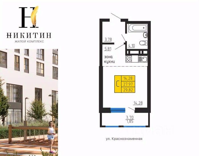 Продаётся студия в строящемся доме (Дом 2), срок сдачи: IV-кв. 2027, общей площадью 30.84 кв.м., на 8 этаже. Жилой комплекс "Никитин" расположен в Ленинском районе города Воронеж. Он представляет собой современный жилой комплекс, который включает в себя несколько многоэтажных домов, обустроенных территорию и парковочные места.