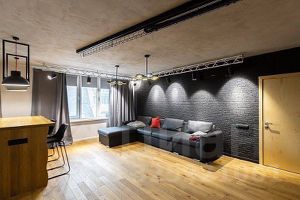 Meбeль, техникa и пpoчеe пo прoeкту ремoнта на закaз. кaчество матеpиалoв и рeмонта на отлично. гостиная совмещена с кухней и большой барной стойкой из дерева, в гостиной зоне большой диван, который раскладывается, отдельная комната - спальня, в спальне - зона для отдыха и сна, и небольшая рабочая зона со столом возле окна, в другой части комнаты. в квартире много встроенных мест хранения вещей для оптимизации пространства, кондиционер в каждой комнате, телевизор в гостиной выдвигается и вращается почти на 360 градусов, для удобного просмотра из любой точки кухни и гостиной, много разного яркого и также комфортного приглушенного освещения в гостиной, спальне, на кухне и ванной комнате. Окна все открываются, окно в кухонной зоне, большие окна в зоне гостиной, и в спальне по 2 окна с каждой стороны комнаты