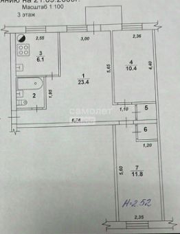 Удобная планировка: квартира-распашонка: 1 проходная комната 23,4м2 с выходом на балкон и 2 изолированные. 11,8 м2 и 10,4м2. Окна одной комнаты выходят на восток, из кухни и двух других комнат - на запад.