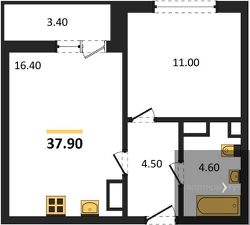 Квартира: 1 к 37,90 кв.м., 1 этаж в комплексе Яблоневые сады (ДСК), 1 очередь, корп.7, сдача: 1кв. , этажей: 20, адрес Воронеж г., Пескова ул., д. 8, Застройщик: ДСК.