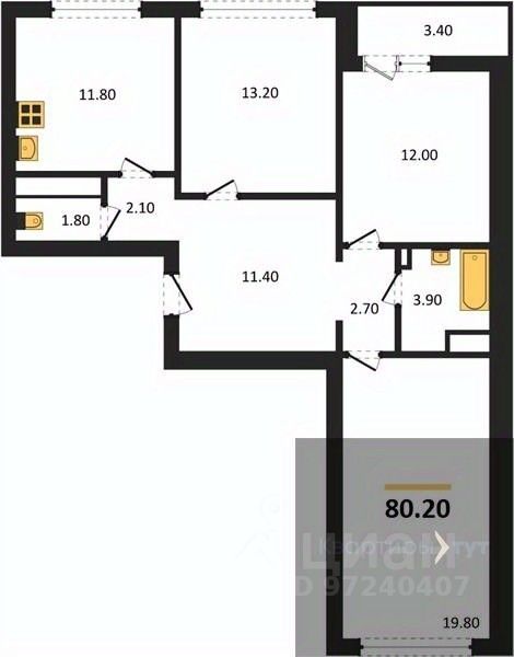 Квартира: 3 к 80,20 кв.м., 1 этаж в комплексе Яблоневые сады (ДСК), 1 очередь, корп.7, сдача: 1кв. , этажей: 20, адрес Воронеж г., Пескова ул., д. 8, Застройщик: ДСК.