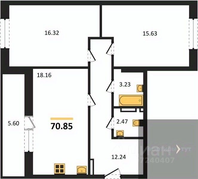 Квартира: 2 к 70,85 кв.м., 5 этаж в комплексе Победа, 2 очередь, корп.3, сдача: 1кв. , этажей: 8, адрес Новая Усмань село, Полевая ул., , Застройщик: ГК ПЕРВОГРАД.