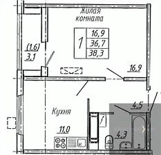 38,3 м²