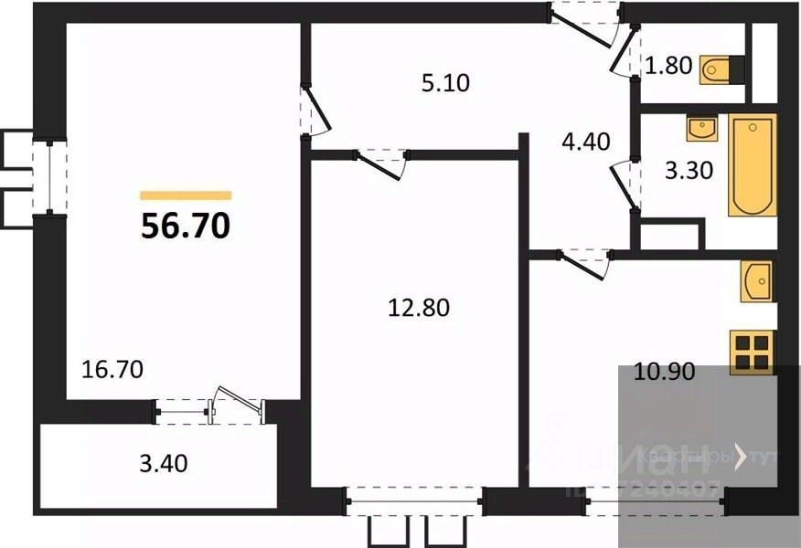 Квартира: 2 к 56,70 кв.м., 4 этаж в комплексе Яблоневые сады (ДСК), 1 очередь, корп.9, сдача: 2кв. , этажей: 19, адрес Воронеж г., Ломоносова ул., д. 129, Застройщик: ДСК.