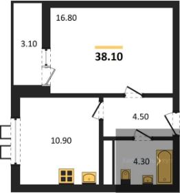 Квартира: 1 к 38,10 кв.м., 4 этаж в комплексе Яблоневые сады (ДСК), 1 очередь, корп.9, сдача: 2кв. , этажей: 19, адрес Воронеж г., Ломоносова ул., д. 129, Застройщик: ДСК.