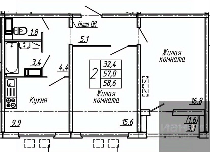 Квартира: 2 к 58,60 кв.м., 4 этаж в комплексе Яблоневые сады (ДСК), 1 очередь, корп.9, сдача: 2кв. , этажей: 19, адрес Воронеж г., Ломоносова ул., д. 129, Застройщик: ДСК.