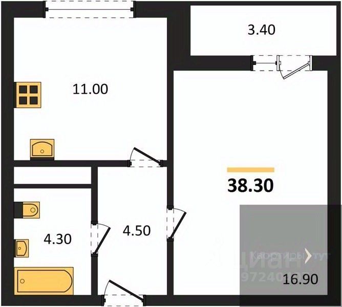 38,3 м²