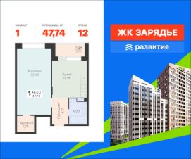 В продаже квартира площадью 47.74 кв. м с черновой отделкой. Квартира расположена на 12 этаже 15 этажного дома, в новом микрорайоне комфорт-класса "Зарядье" (Девелопер - федеральный застройщик ГК "Развитие").